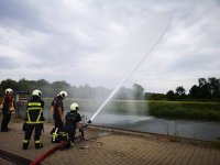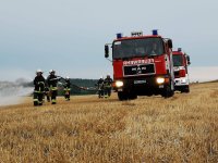 Auf Grund der letzten Brandeinsätze mit Schwerpunkt Feld- und Ödlandbrand übten wir auf einem bereits abgemähten Feld die Wasserabgabe aus der Bewegung, auch "pump and roll" genannt.