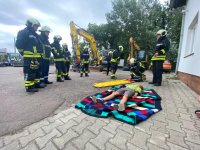 Am 05.08.2022 führten die Kameraden unserer Ortsfeuerwehr eine 2 1/2 stündige Ausbildung zur schweren Technischen Rettung durch. Beim örtlich ansässigen Baumaschinenverleih Kohrmann musste durch die 14 Einsatzkräfte eine "Person", welche unter einer Baggerschaufel eingeklemmt war, mittels Hebekissen befreit und medizinisch erstversorgt werden.