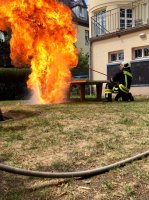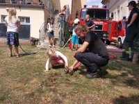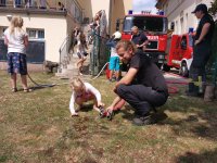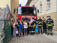 Die Kameraden sorgten mit Büchsenspritzen, einer Fettbrandvorführung und kleinen Geschenken und viel gute Laune und fröhliche Kinderaugen.